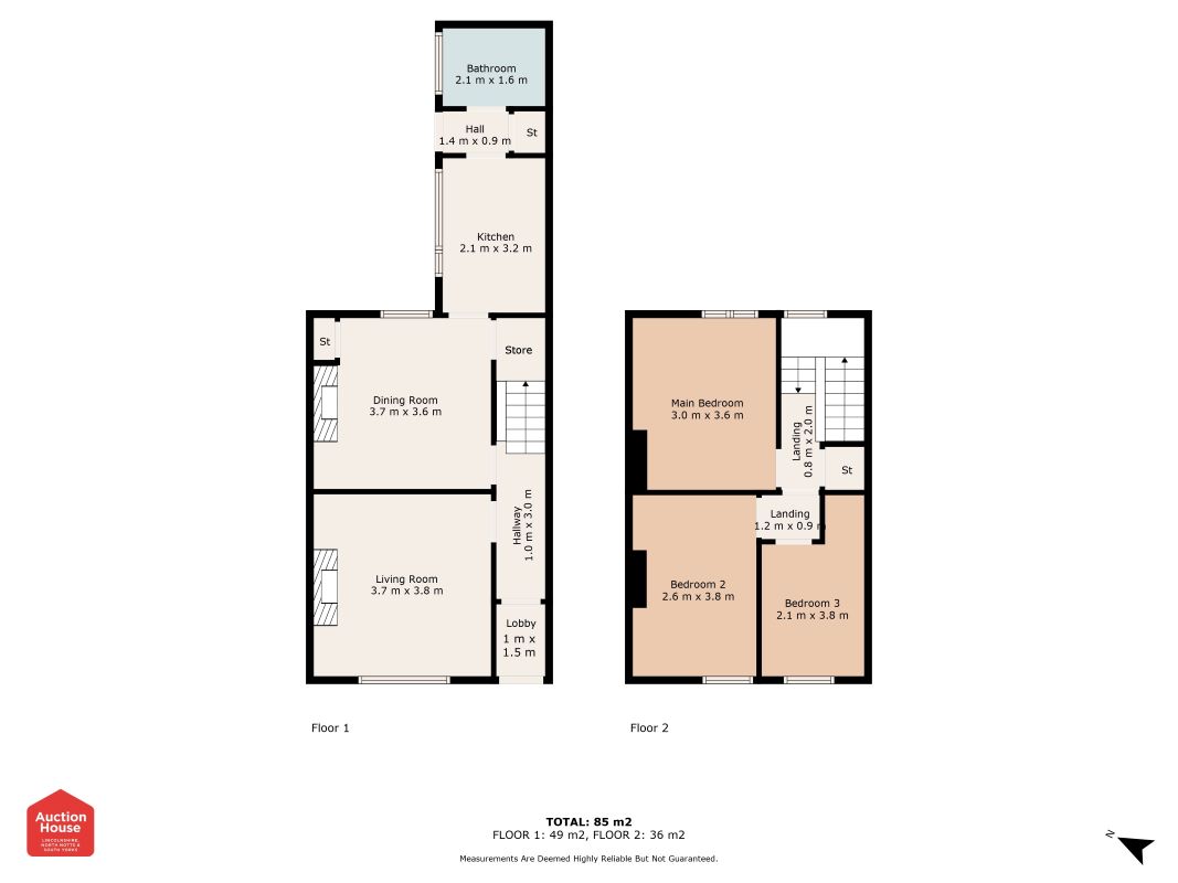 Situation: The property is located on Cochrane Terrace, Ferryhill and is well positioned for access to the town centre and its facilities and amenities. The historic city of Durham is within easy reach, along with Middlesborough, Darlington, and Newcastle upon Tyne and the A1 road network. Description: A wonderful opportunity to acquire this mid terrace house, with the benefit of 2 reception rooms and 3 bedrooms. This property provides an excellent opportunity for both owner occupiers and investors alike, with huge scope and significant rental yield opportunity. An internal viewing is a must to appreciate the accommodation on offer. Potential rental of approximately £550 pcm (£6,600 per annum). Accommodation Ground Floor: Entrance Lobby Entrance Hallway Living Room Dining Room Kitchen Rear Lobby Family Bathroom First Floor: Bedroom 1 Bedroom 2 Bedroom 3 Outside Enclosed rear courtyard.Material Information Tenure: The property is freehold. All prospective bidders should satisfy themselves of the tenure by inspecting the legal pack. Council Tax: The property falls within Durham County – BAND A Possession: Vacant possession will be given upon completion. Viewing: Strictly by appointment with Auction House. Services: Prospective purchasers are advised to make their own enquiries of the relevant statutory authorities. NB: Services, Apparatus and Equipment have not been tested by Auction House and therefore cannot be verified as being in working order. The buyer is advised to obtain verification from their Solicitor/Surveyor. These particulars are believed to be correct but their accuracy is not guaranteed and they do not form any part of any contract. Information relating to Rating and Town and Country Planning matters has been obtained by verbal enquiry only. Prospective purchasers are advised to make their own enquiries of the appropriate Authority. All measurements, areas and distances are approximate only. Po