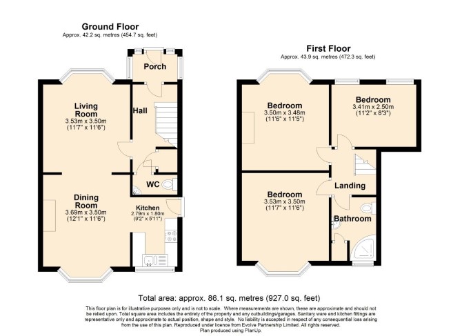 Ground Floor Double Reception Room Kitchen Separate WC & wash basin First Floor Three Bedrooms Bathroom with separate shower enclosure, WC & wash basin