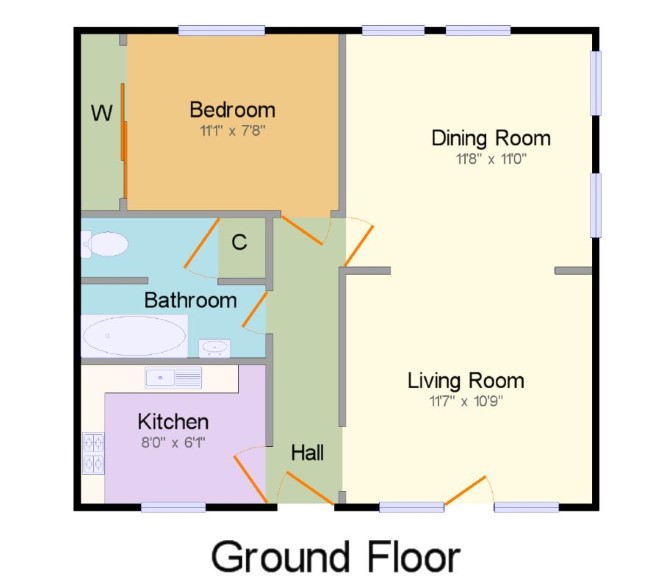 Ground Floor Large Reception Room Bedroom Kitchen Bathroom with WC and wash basin