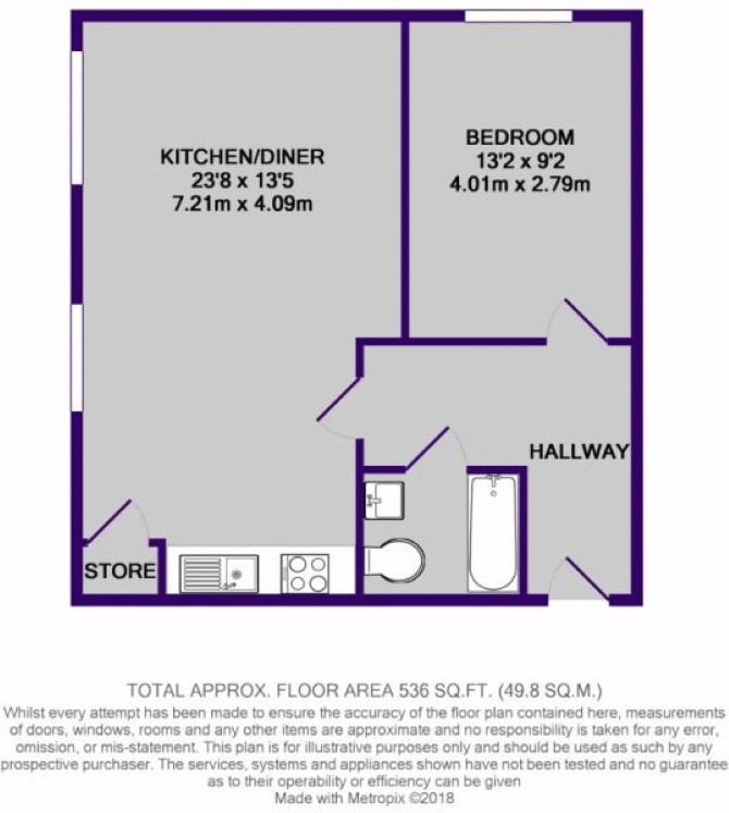 Second Floor Reception Room with open plan Kitchen Bedroom Bathroom with WC & wash basin GIA approx. 536 sq ft