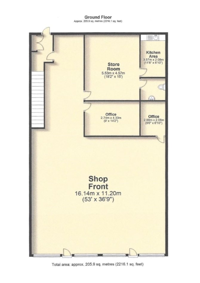 The property comprises a mid terraced building arranged to provide a double fronted ground floor shop and and self-contained office to the first floor both also with access from Overhaugh Street.