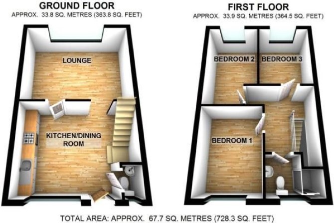 First Floor Reception Room Kitchen/Diner Second Floor Three Bedrooms Shower Room