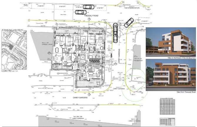 The site occupies a prominent corner plot at the junction of Thessaly Road and Carey Gardens in Nine Elms close to the local shops and amenities. The open spaces of Larkhall Park are within easy reach. Transport links are provided by Wandsworth Road overground rail station.