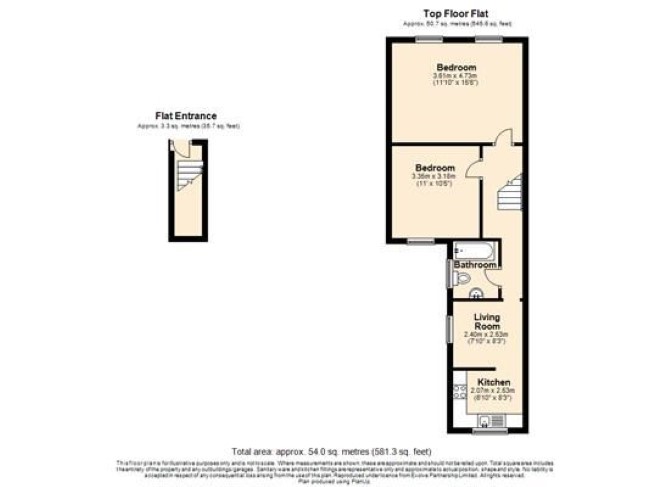 The property comprises a first floor two bedroom flat situated within a mid terrace building arranged over ground and first floors.