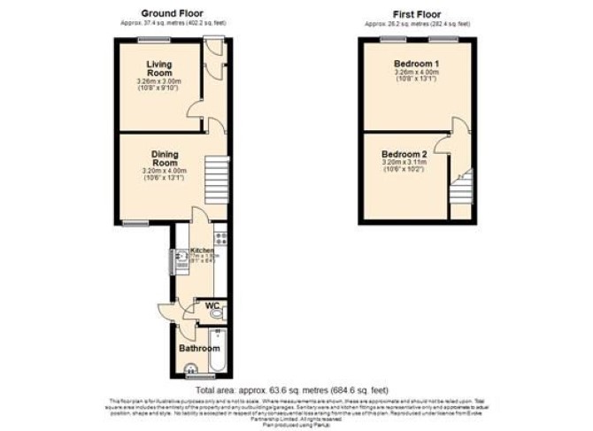 The property comprises a two bedroom mid-terrace house arranged over ground and first floors.