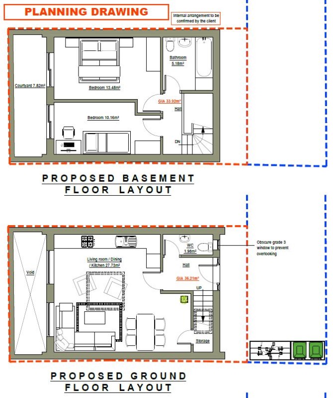Lower Ground Floor Two Bedrooms Bathroom Ground Floor Open Plan Reception/Kitchen WC G.I.A - 70 sq m / 753 sq ft