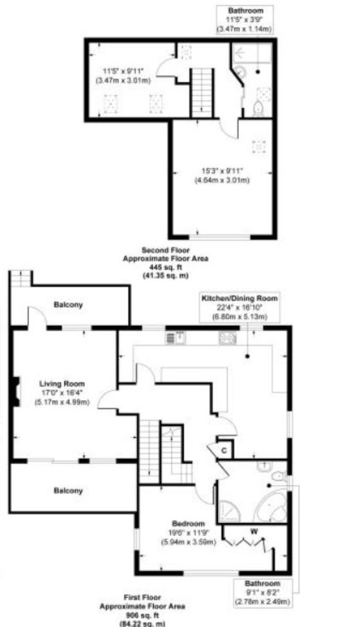 Ground Floor - Flat 1 Reception Room Two Bedrooms Kitchen Bathroom Separate WC GIA 785 sq ft First & Second Floor Maisonette - Flat 2 Reception Room with Two Balconies Three Bedrooms Kitchen Two Bathrooms GIA 1,351 sq ft