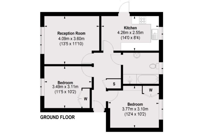 Ground Floor Reception Room Kitchen Two Bedrooms Bathroom GIA 678 sq ft