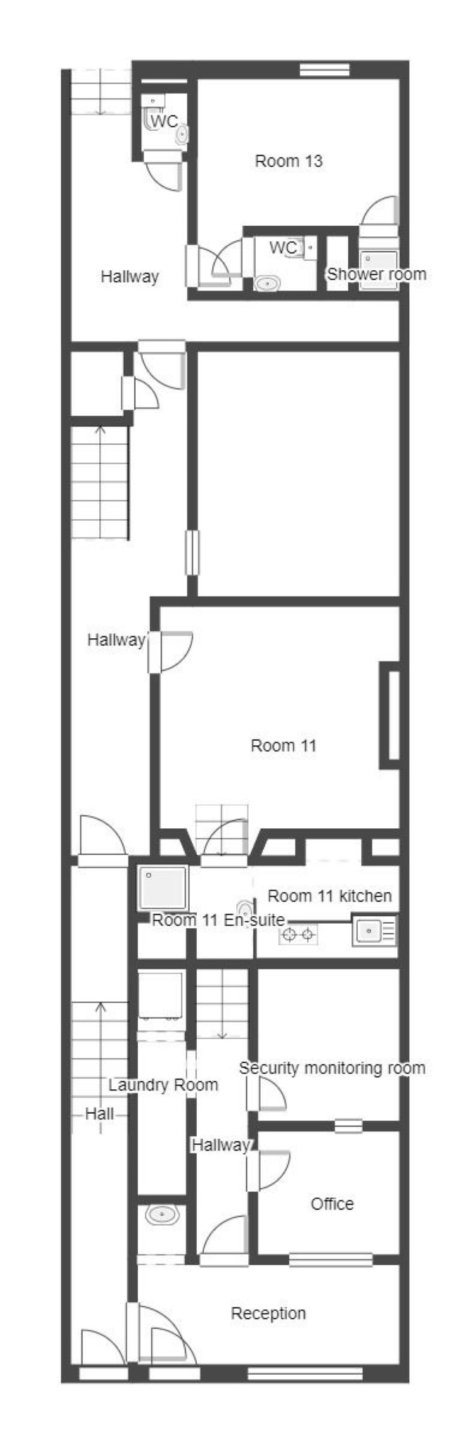 Ground Floor (GIA 226.2 sq m) Reception Room Double Lounge Area Bedroom with En-Suite Shower Room/WC & Kitchen Bedroom with En-Suite Shower Room/WC Bedroom with En-Suite Shower Room/WC Bedroom with En-Suite Shower Room/WC Bedroom with En-Suite Shower Room/WC Communal Kitchen Two Separate W/Cs Two Store Rooms Office Raised Ground Floor (GIA 86.85 sq m) Bedroom with En-Suite Shower Room & Separate WC Bedroom with En-Suite Shower Room/WC Bedroom with Kitchenette & En-Suite Shower Unit Separate WC First Floor (GIA 43.69 sq m) Two Bedrooms Kitchen Shower Room/WC Second Floor (GIA 44.57 sq m) Two Bedrooms Bathroom Room