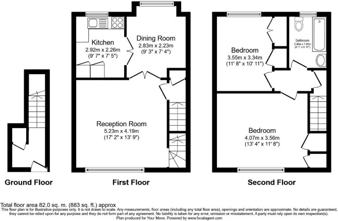 First Floor Reception/Dining Room Kitchen Second Floor Two Bedrooms Bathroom