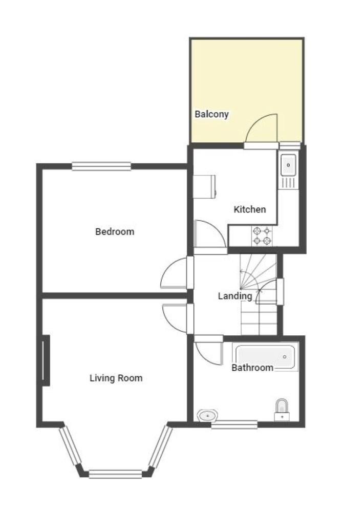 The property comprises a first floor one bedroom flat situated within a mid terrace building arranged over ground and first floor levels.