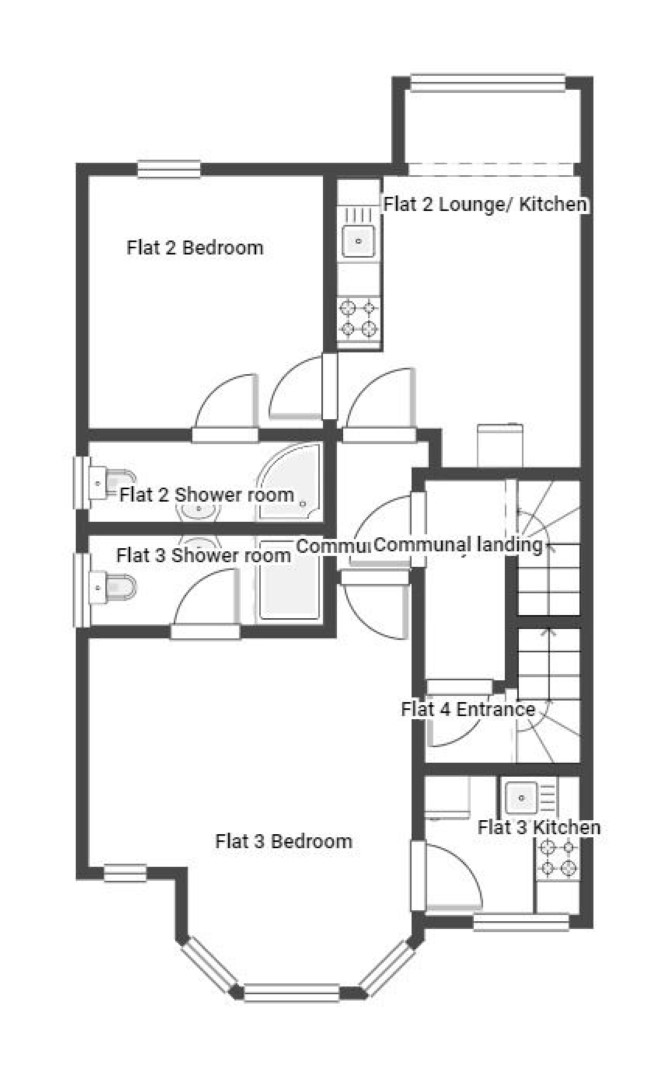 The property comprises a semi detached building arranged internally to provide four self-contained flats over ground and two upper floors.
