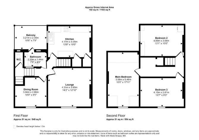 First Floor Reception Room Kitchen Bedroom Bathroom Terrace Second Floor Three Bedrooms Total GIA: Approximately 1,194 sq ft / 111 sq m