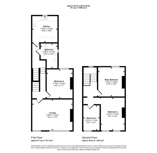 The property comprises a first and second floor four bedroom split level flat situated within a mid terrace building arranged over ground and two upper floors.