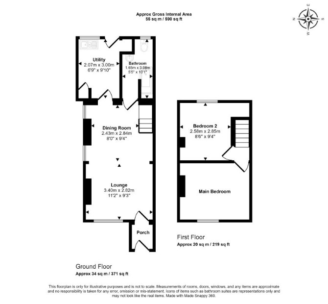 The property comprises a two bedroom semi detached house arranged over ground and first floors.