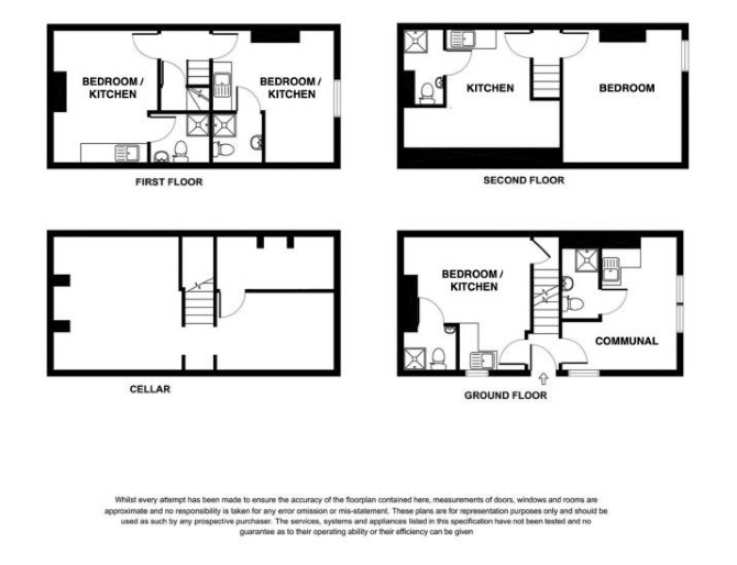 The property comprises a double fronted end of terrace building arranged to provide four self contained studios across ground, first and second floors.
