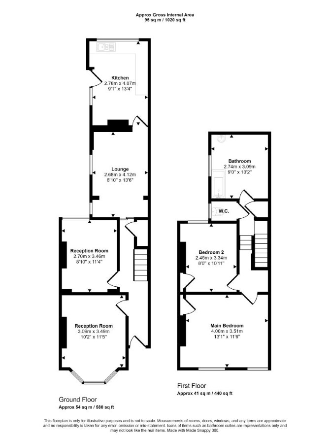 Ground Floor Two Reception Rooms Kitchen First Floor Two Bedrooms Bathroom Separate WC