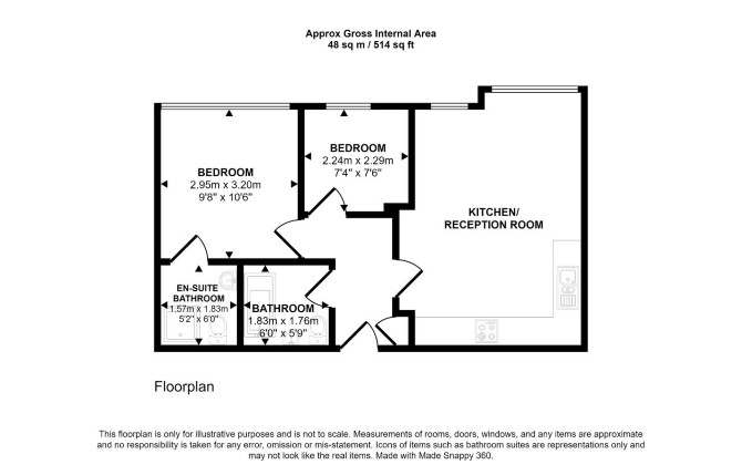 Sixth Floor Open Plan Reception/Kitchen Two Bedrooms (One with En-Suite) Bathroom