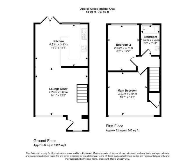 The property comprises a two bedroom end of terrace house arranged over the ground and first floors.