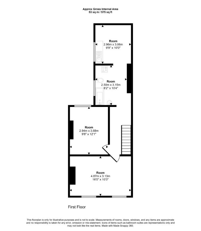 The property comprises a first floor three room flat situated within a mid terrace building arranged over the ground and first floors. The property requires a full program of refurbishment.