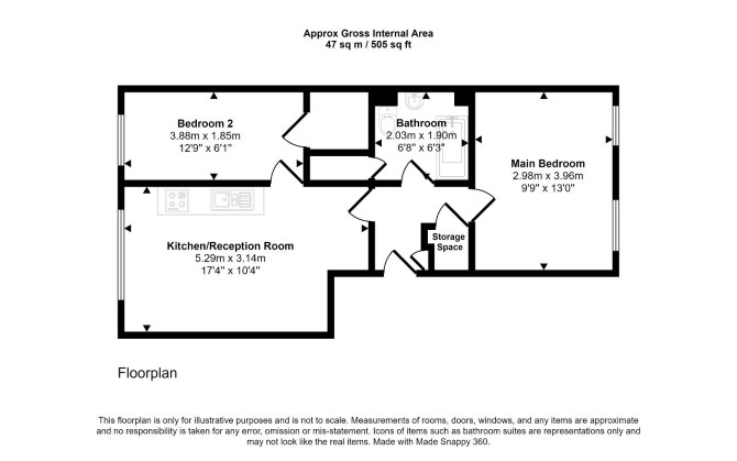 Second Floor Reception Room with Open Plan Kitchen Two Bedrooms Bathroom