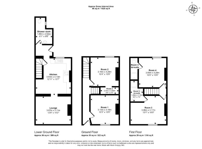Lower Ground Floor Kitchen Reception Room Shower Room Ground Floor Two Bedrooms First Floor Two bedrooms (Both En-Suite)