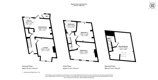 Ground Floor Open Plan Reception/Kitchen Reception Room Kitchen First Floor Two Bedrooms Bathroom Second Floor Bedroom (opportunity to reconfigure and add second bathroom)