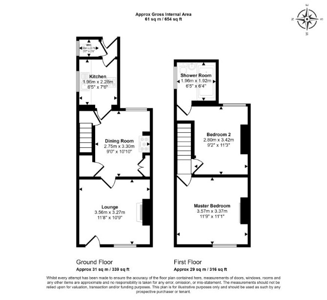 Ground Floor Two Reception Rooms Kitchen WC First Floor Two Bedrooms Bathroom