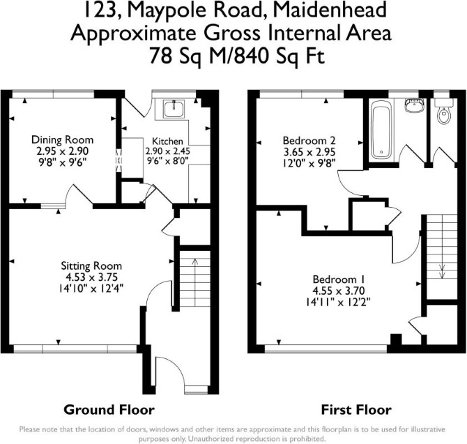 The property comprises a two bedroom end of terrace house arranged over ground and first floors.
