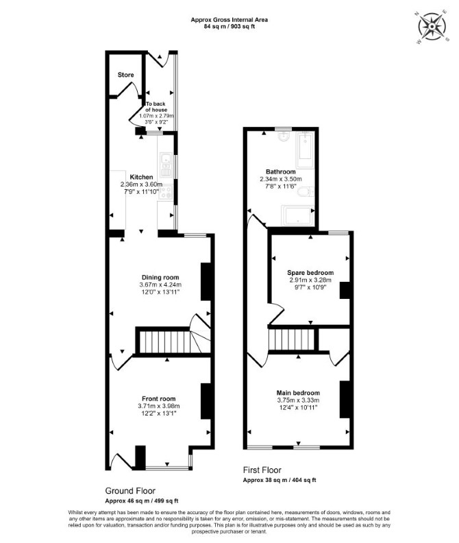 The property comprises a two bedroom mid terrace house arranged over ground and first floors.