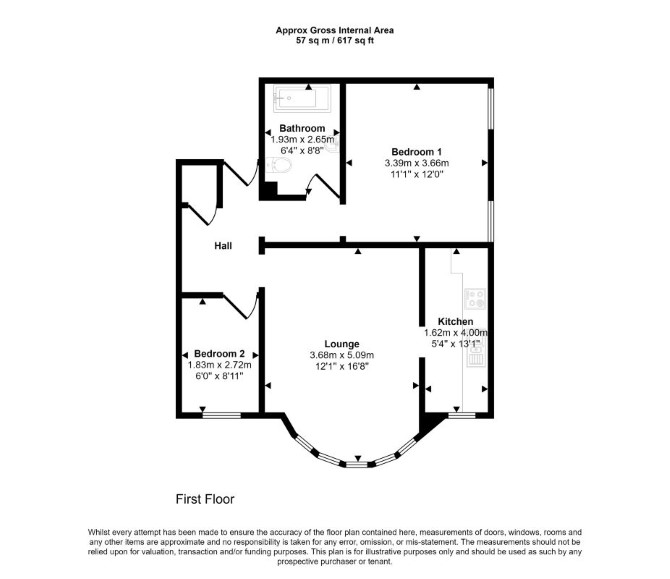 The property comprises a first floor two bedroom flat situated within an end of terrace building arranged over ground and first floors.