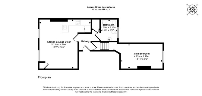 The property comprises a first floor one bedroom flat situated within a mid terrace building arranged over ground and two upper floors.