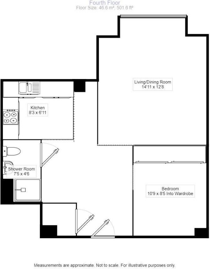Fourth Floor Open Plan Reception/Kitchen Bedroom Shower Room