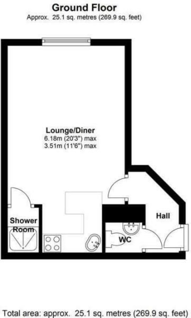 Ground Floor Studio Room with Kitchenette Shower Cubicle WC G.I.A Measuring Approximately 25 sq m (270 sq ft)