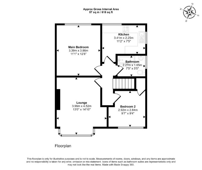 The property comprises a first floor two bedroom flat situated within a semi-detached building arranged over ground and first floors.