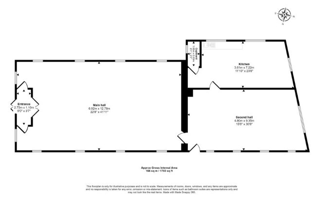 Ground Floor Entrance Foyer Main Church Hall Kitchen Office GIA Approx.166 sq m / 1,783 sqft