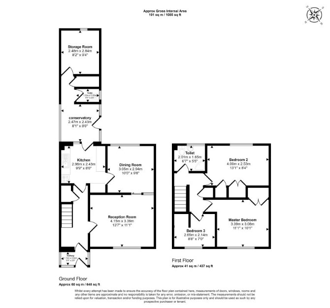 Ground Floor Two Reception Rooms Kitchen WC First Floor Three Bedrooms Bathroom