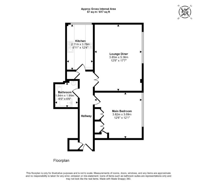 The property comprises a second floor one bedroom flat situated within a purpose built block arranged over ground and two upper floors.