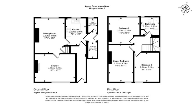 Ground Floor Two Reception Rooms Kitchen WC First Floor Three Bedrooms Bathroom