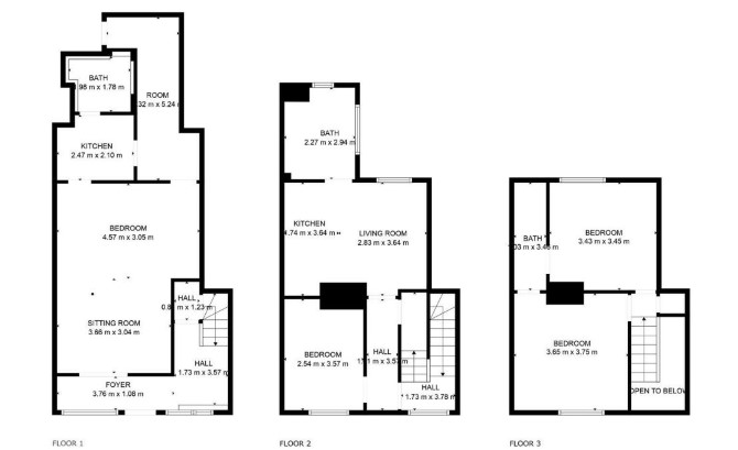 Ground Floor Studio Room Kitchen Bathroom First Floor Reception Room with Open-Plan Kitchen Bedroom Bathroom Second Floor Two Bedrooms Bathroom