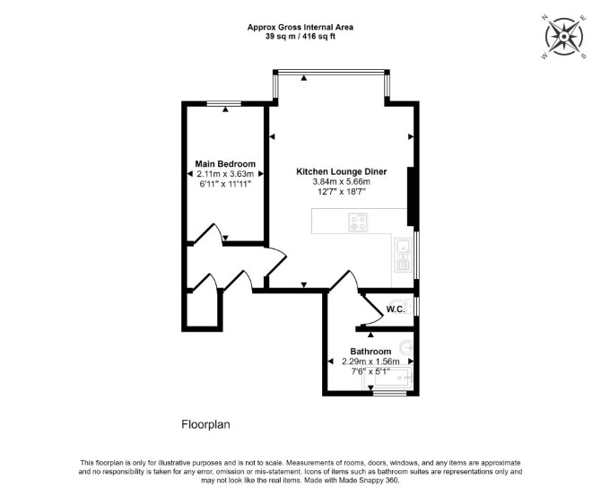 First Floor Reception Room with Open-Plan Kitchen Bedroom Bathroom Separate WC