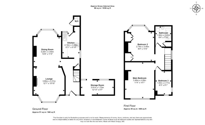 Ground Floor Through Reception Room Kitchen WC (outside) First Floor Three Bedrooms Bathroom