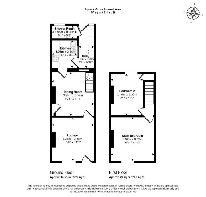 The property comprises a two bedroom mid terrace house arranged over ground and first floors.