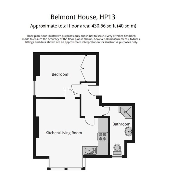 First Floor Reception Room with Open-Plan Kitchen Bedroom Bathroom