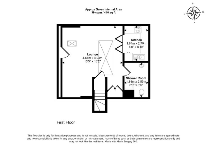 The property comprises a second floor studio flat situated within an end of terrace building arranged over ground and two upper floors.