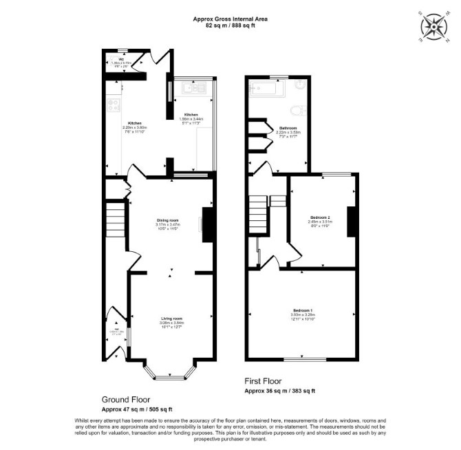 Ground Floor Through Reception Room Kitchen WC First Floor Two Bedrooms Bathroom