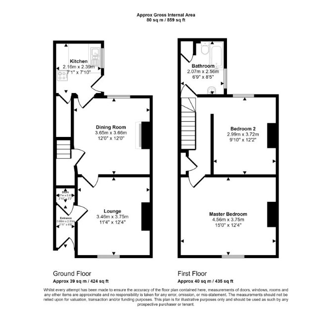 The property comprises a two bedroom mid terrace house arranged over ground and first floors.