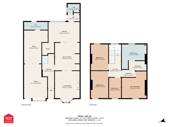 24 North Road East Ground Floor Two Reception Rooms Kitchen WC First Floor Four Bedrooms Bathroom 25 North Road East Ground Floor Retail Unit WC GIA Approx: 195 sq m