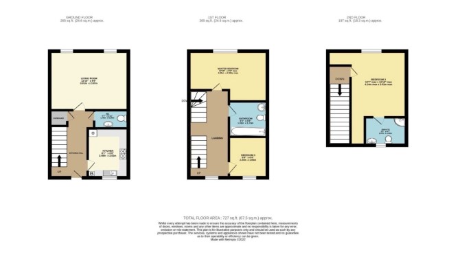 The property comprises a three bedroom mid terrace house arranged over ground, first and second floors.