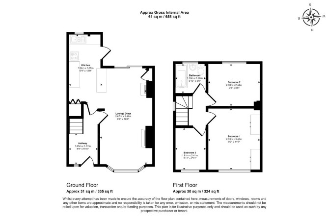 Ground Floor Reception Room with Open-Plan Kitchen First Floor Three Bedrooms Bathroom